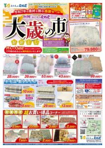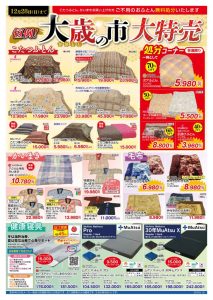 ふとんのたかだ恒例「大歳の市」開催のお知らせ今年も一年、ふとんのたかだをご利用いただき、誠にありがとうございました。